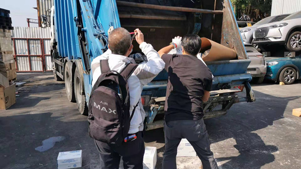 3、接著將需要香港銷毀的產品運輸過來,再由轉移到專業的香港銷毀現場,全程都有攝像以及照片監控,監督整個過程